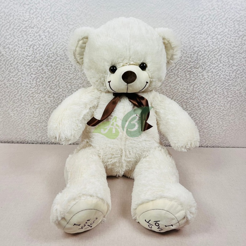 Метровый плюшевый мишка не линяет во время стирки, его шерстка не “сваливается”, и даже если на нем полежать, он быстро вернет первоначальную форму.