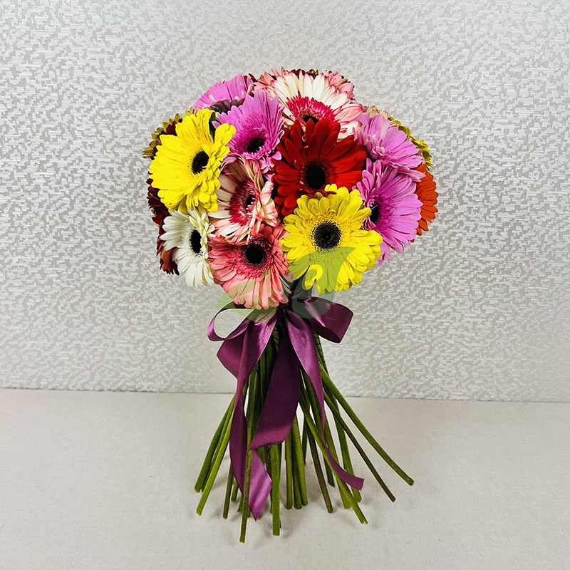 Огромный шикарный букет из 35 гербер разного цвета. Не нужно придумывать высокопарных речей. Этот букет выразит многообразие ваших чувств лучше всяких слов. Больше нет никакой недосказанности и скрытых чувств. С гербер в подарок начнётся ваша история любви!