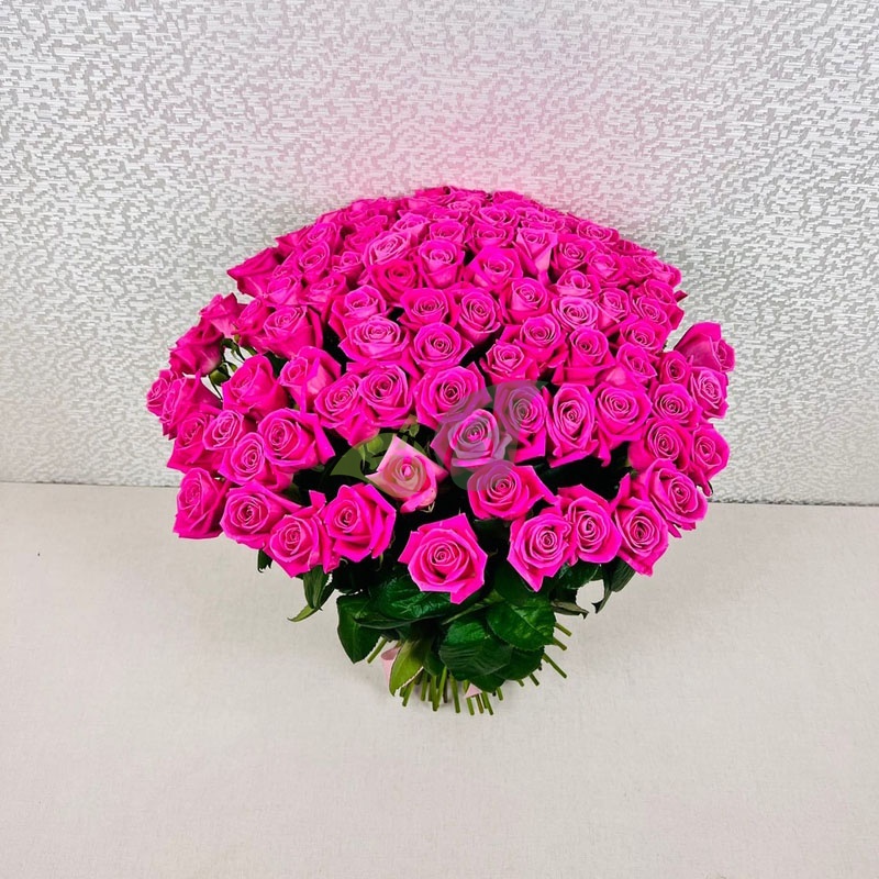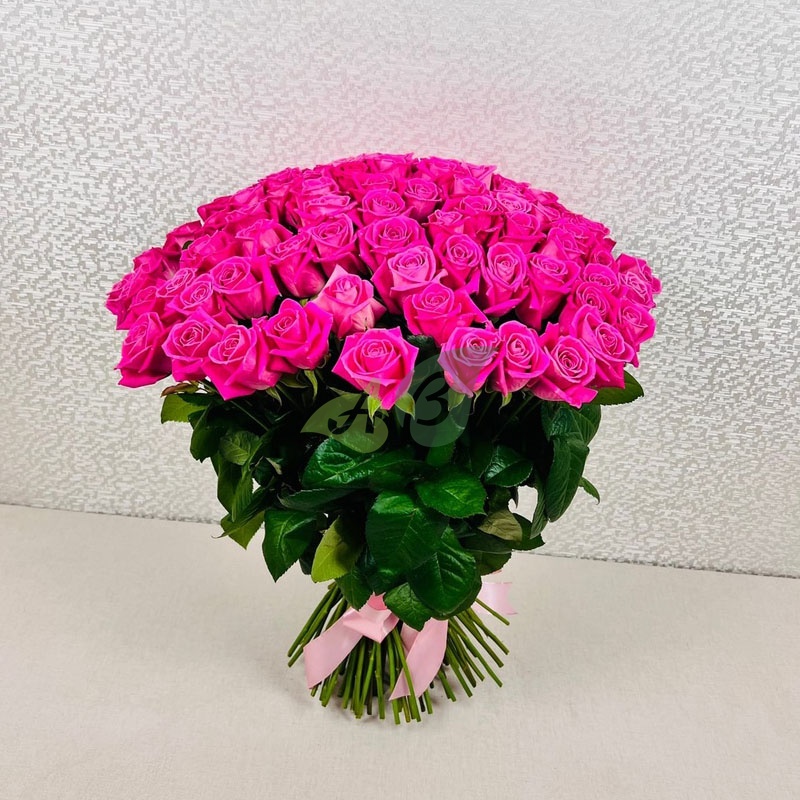 - Роза - 101 штука, цвет - розовый, длина стебля - 60 см;
