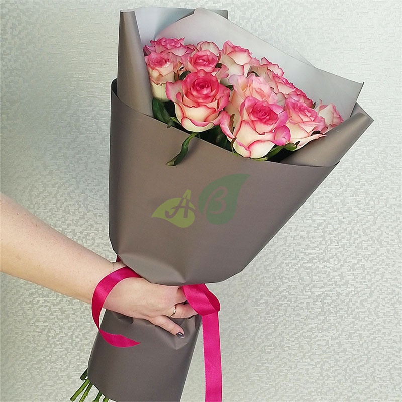 • Роза - 15 штук, цвет - бело-розовый, длина стебля - 60 см;