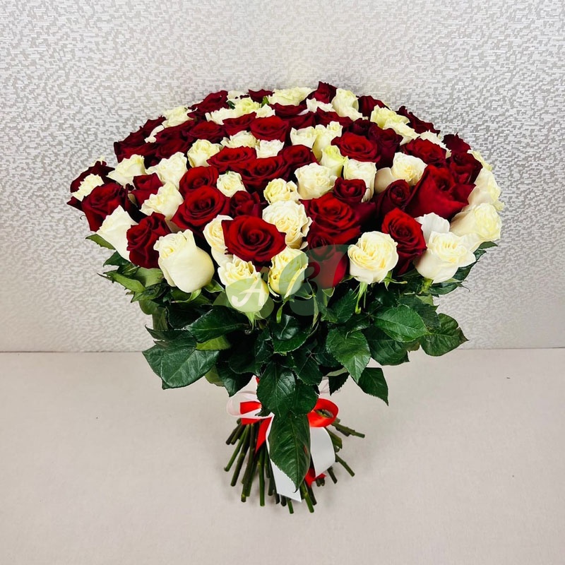 Самые свежие и исключительно нежные цветы в составе букета из 101 красной и белой розы стоит купить для той, которая в вас души не чает. Которая любит вас всегда и никогда не предаст. Для родной мамы.