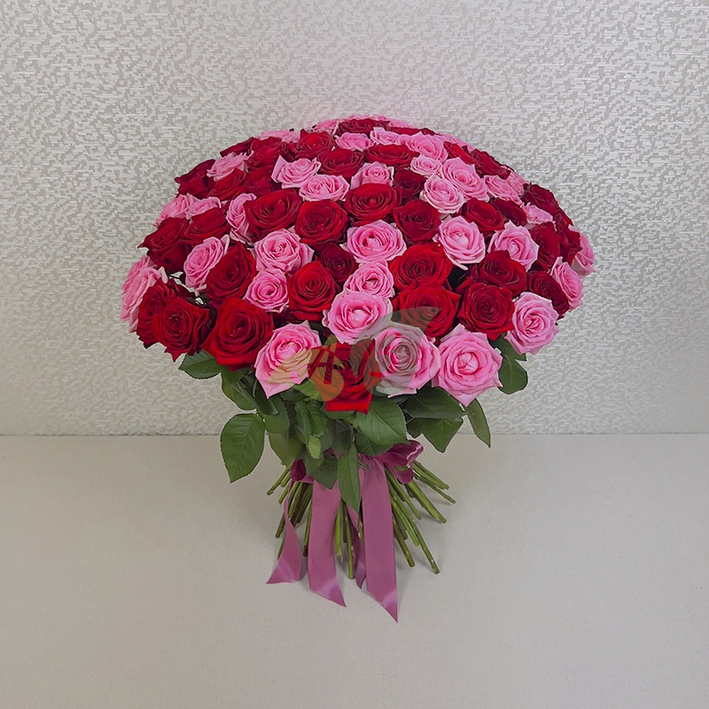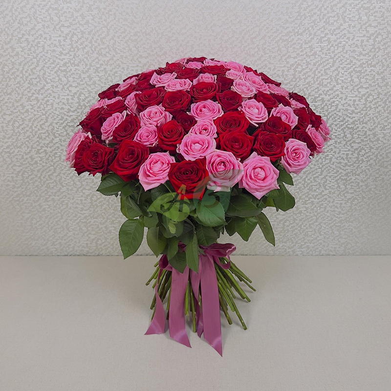 Состав и характеристики букета 101 красная и розовая роза "Россия":