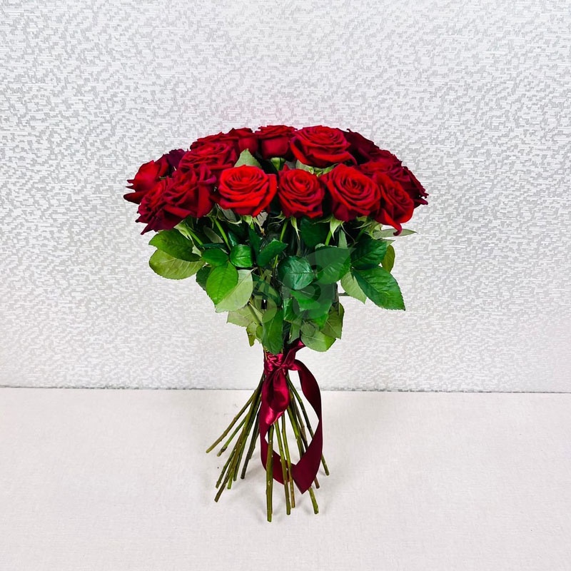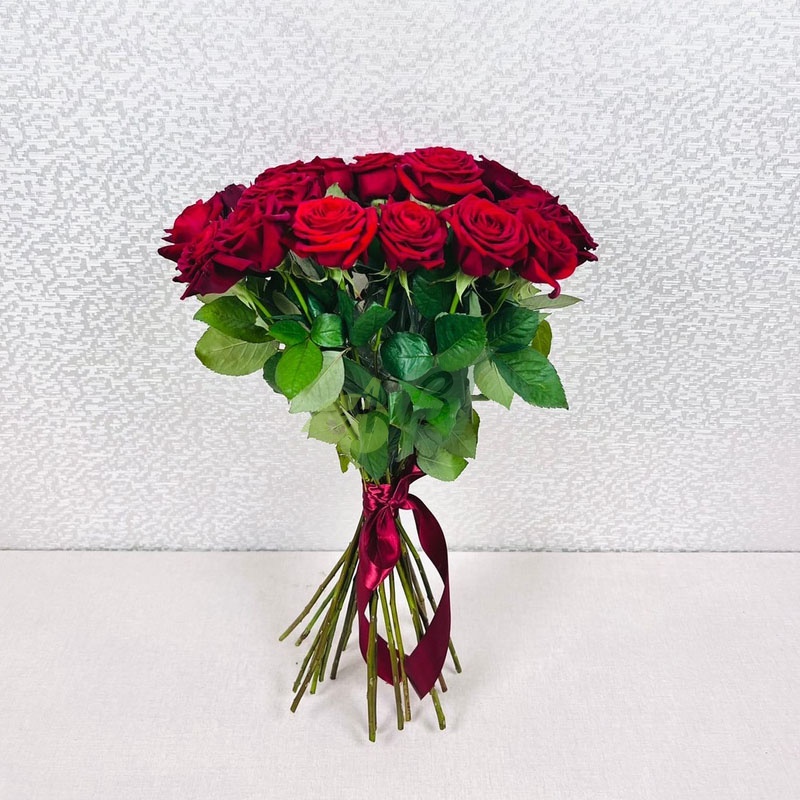 • Роза - 21 штука, цвет - красный, длина стебля - 60 см;