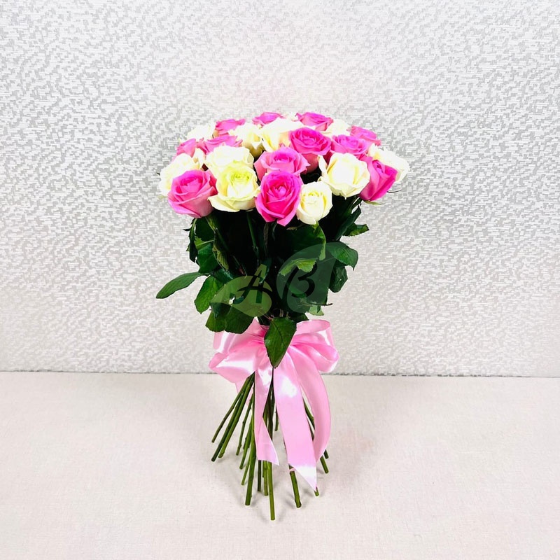 25 роз белого и розового цвета – лучший букет, достойный самой красивой невесты. Роскошь этих цветов можно дополнить сладким подарком или набором косметики и заказать доставку прямо в руки. Тогда его можно подарить не только на свадьбу, но и на 8 марта или любой другой праздник.