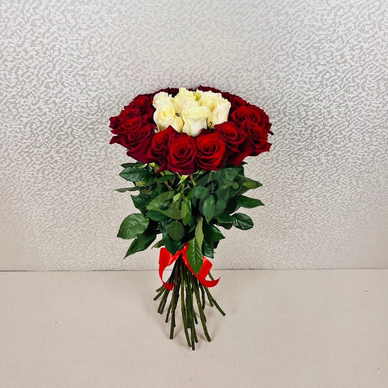Всего пара кликов и букет из 25 белых и красных роз будет доставлен по нужному вам адресу в Охе.