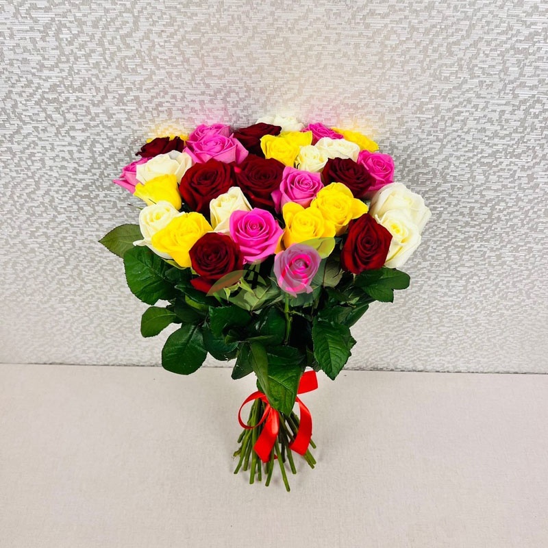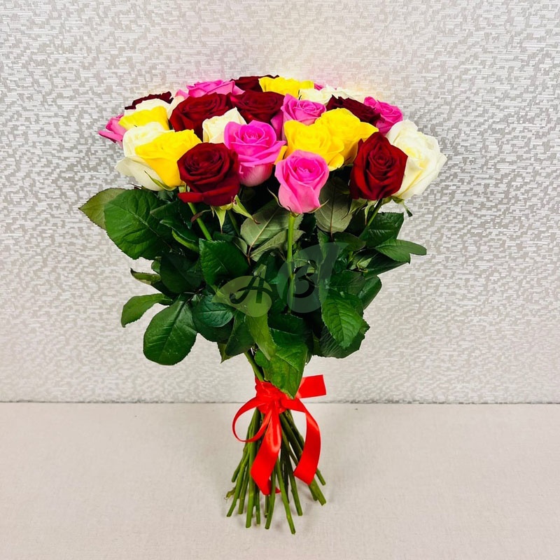 Букет "25 разноцветных роз" (60 см)