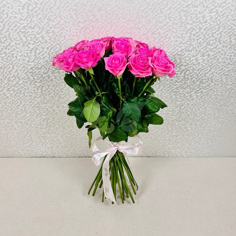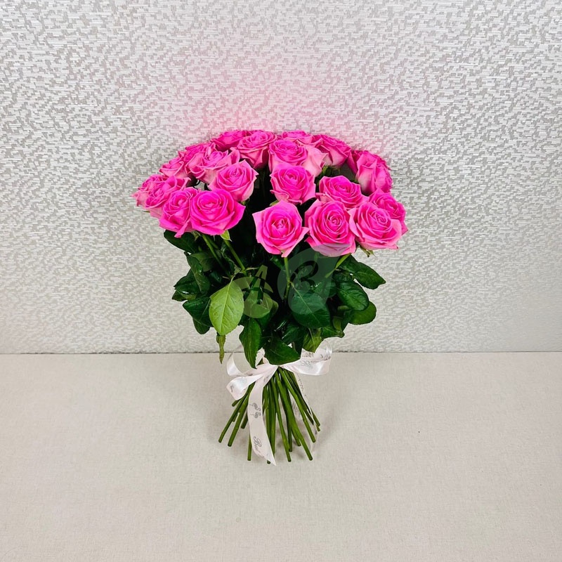 - Роза - 25 штук, цвет - розовый, длина стебля - 60 см;
