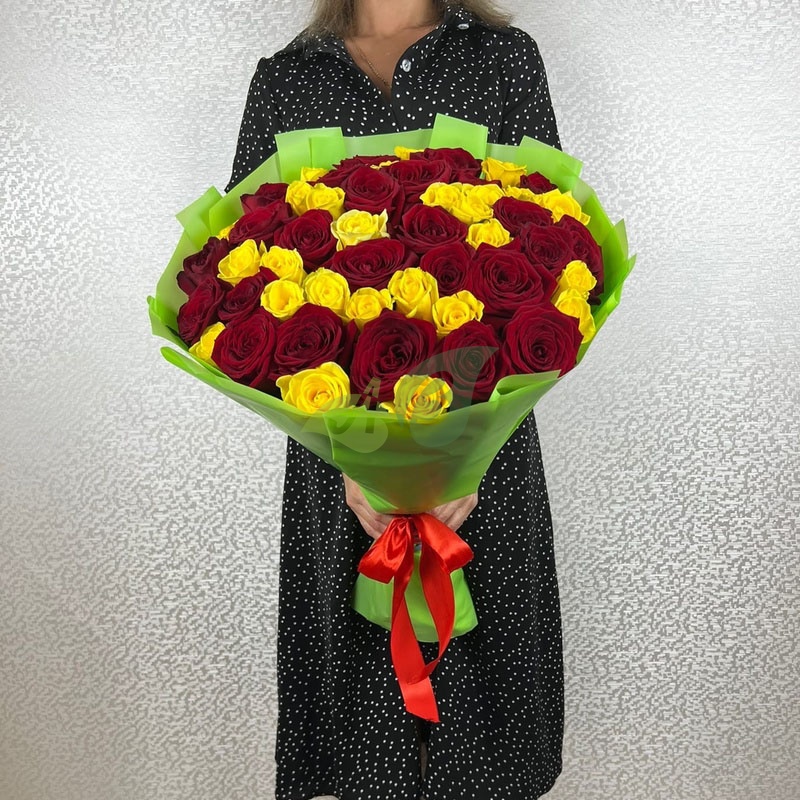 Букет красных и желтых роз он станет прекрасным подарком из цветов как для возлюбленной, так и для друга или родственника. Желтый солнечный цвет роз сулит богатство, счастье и благополучие, а яркие красные бутоны роз делают его еще прекраснее!