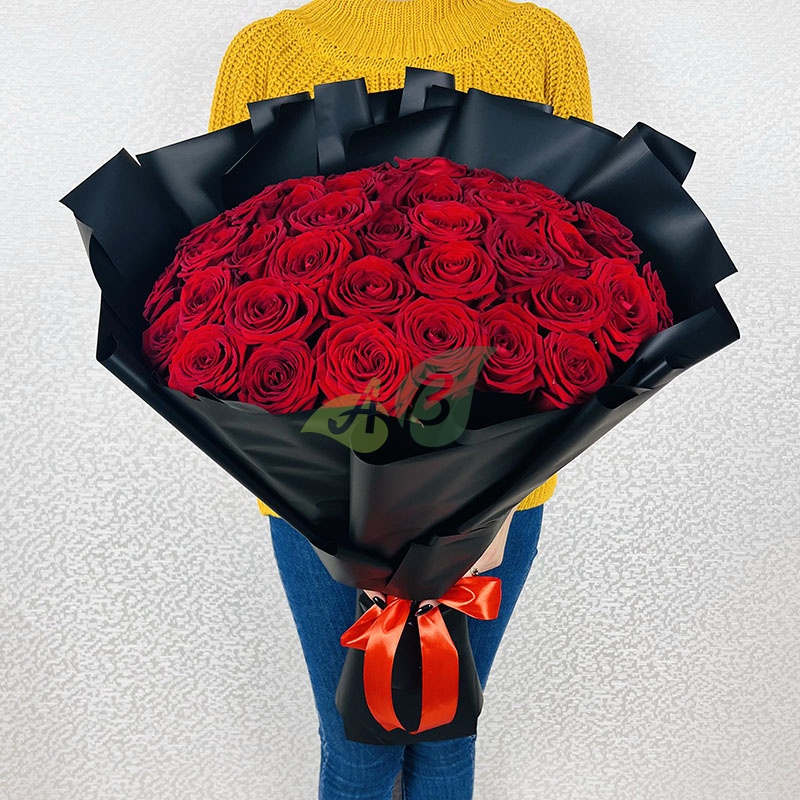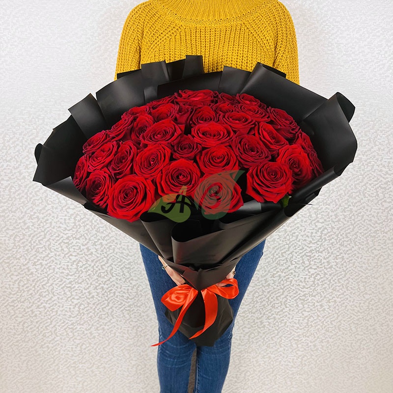 Красные розы в букете издавна считались символом любви. Роскошная чёрная упаковка подчёркивает изысканность и великолепие каждой розы. Ни одно сердце не сможет устоять против такого шикарного букета из роз!