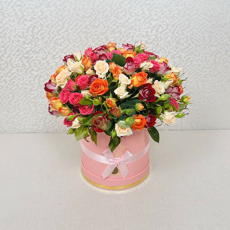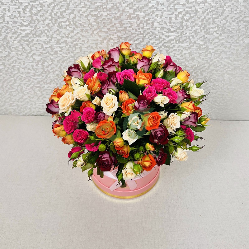 Состав и характеристики композиции в коробке "Микс из 35 кустовых роз":