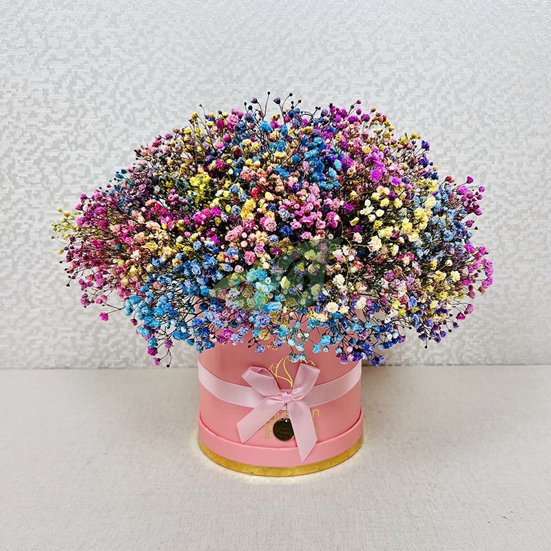 Состав и характеристики композиции в коробке "Радужна гипсофила":