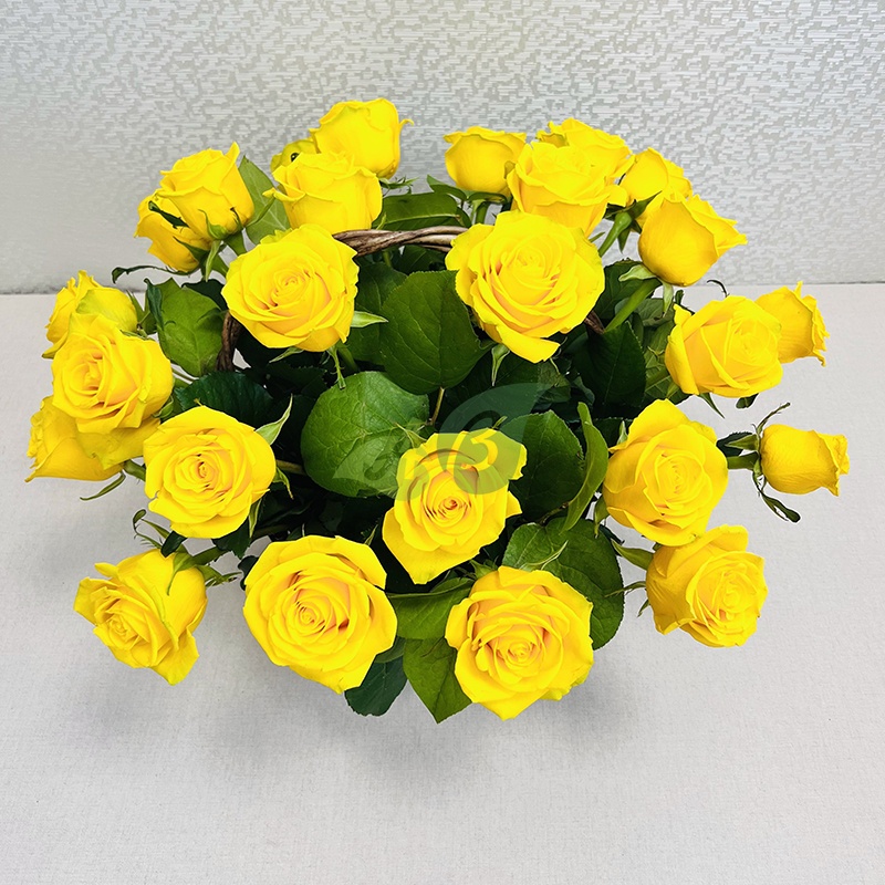 Композиция из желтых роз в корзине