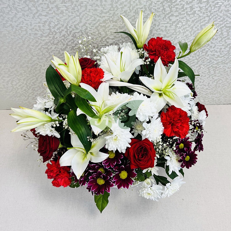 Элегантная, пышная композиция собранная из лилий, роз, хризантем разного цвета в красивой корзине впечатлит самую избалованную красавицу. Она напоминает о лете, дарит самые позитивные эмоции и навсегда останется в памяти получателя.