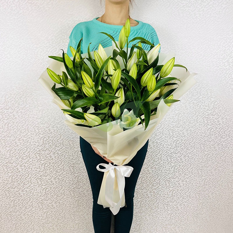 Скромная композиция из 3 лилий или роскошная из 31 цветка – какой букет заказать, решать вам. Мы же гарантируем, что цветы будут свежими.