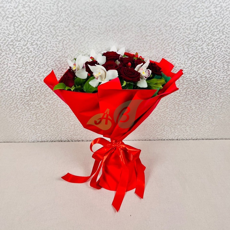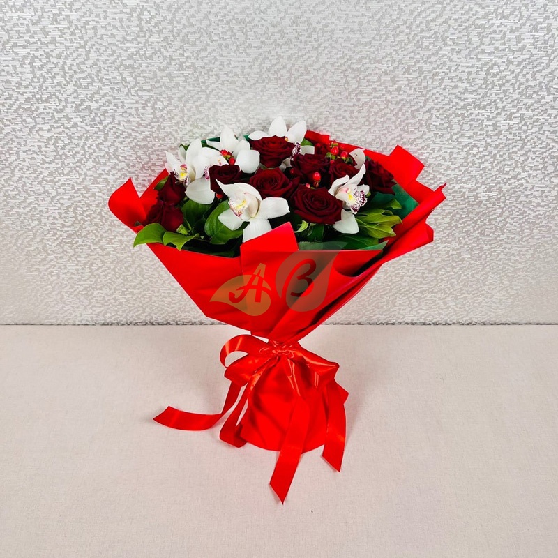 Шикарный букет – это сочетание роз и восхитительных орхидей в одной композиции. Эти цветы можно заказать для модницы, ведь он довольно необычен.
