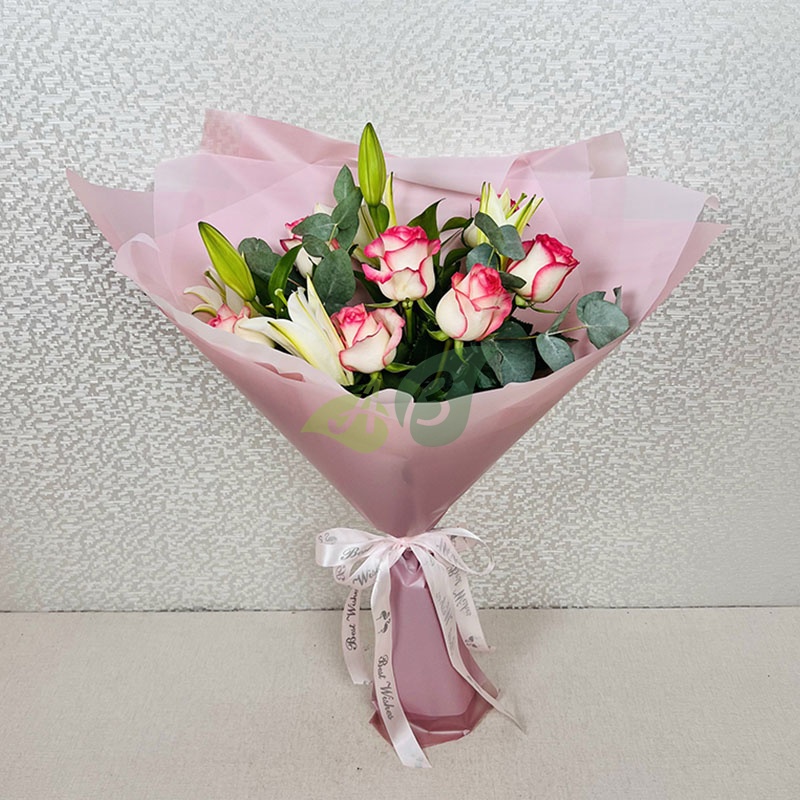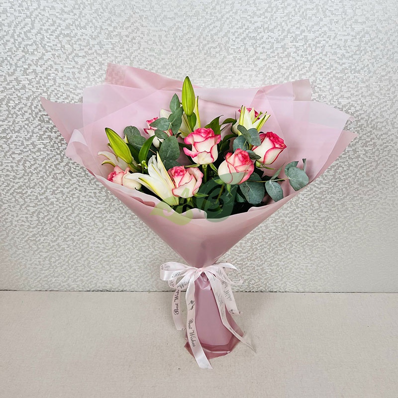 Состав и характеристики букета из роз и лилии "Прелесть":